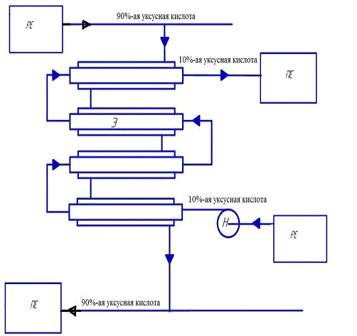90%-ая уксусная кислота, который через стенку трубы подогревает нагреваемую