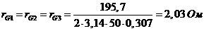 Сопротивления генераторов определяются по формуле: