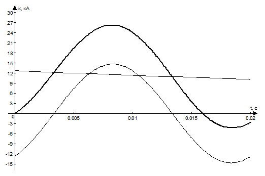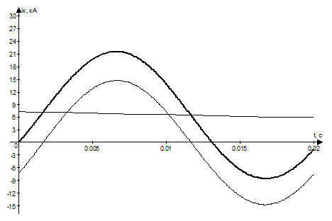 Осциллограммы периодической и апериодической составляющих тока короткого