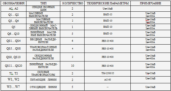 основного электротехнического оборудования. В соответствии с заданными