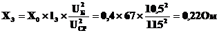 данная система, определяется расчётное индуктивное сопротивление Храсч :