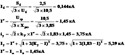 напряжения генераторов; правильно вычислять величины токов короткого замыкания