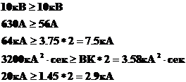 учитываем, что через них при коротком замыкании протечет ток равный двойному