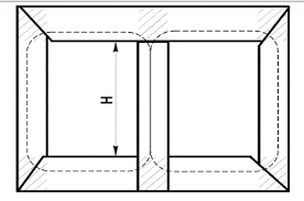 Для определения массы стали магнитную систему мысленно делят на части, масса которых легко рассчитывается. Имея ввиду в дальнейшем определение потерь и тока ХХ трансформаторов из холоднокатаной стали, следует делить магнитную систему так, чтобы условия прохождения магнитного потока в пределах каждого из участков были более или менее одинаковыми (рисунок 6). На данном рисунке также схематически показана средняя линия основного магнитного потока. В пределах вертикальных участков поток идет вдоль направления проката листов, что обеспечивает минимальные потери активной и реактивной мощности. В пределах заштрихованных участков (углов) магнитного потока искривляются и не совпадают с направлением проката, что приводит к увеличению потерь в стали и тока холостого хода.