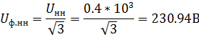 Для трехфазного трансформатора фазный ток обмотки одного стержня, для соединения обмоток звездой, фазные напряжения: