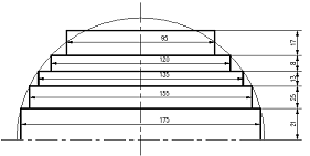 Выбираем конструкцию трехфазной плоской шихтованной магнитной системы, собираемой из пластин холоднокатной стали 3404 толщиной 0.35 мм. Из таблицы (8-2) [1] для стержня диаметром 18 см выбираем размеры пакетов. Число ступеней для стержня 6, для ярма 5.