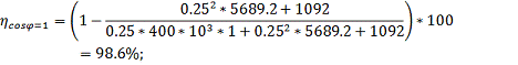 напряжения короткого замыкания подставляются в процентах, то ![]()