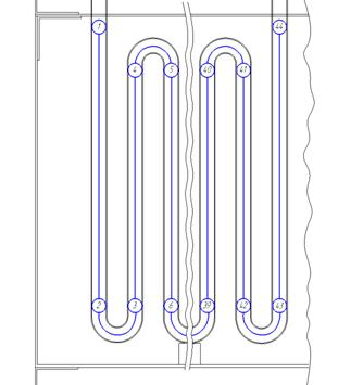 Ширина рассчитывается с учетом того, что 32 трубочки расположены в два ряда, в шахматном порядке, таким образом что расстояние между осями трубочек одного ряда составляет 2.3 dнар..