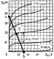 На выходных характеристиках транзистора построим нагрузочную прямую по