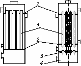 2-трубные решетки; 3-щели; 4-патрубки; 5-камера