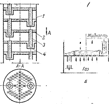 К достоинству трубчатых провальных тарелок относится легкость отвода тепла от барботажного слоя на тарелке путем пропускания охлаждающего агента по трубам, из которых состоит тарелка. Однако эти тарелки в сравнении с дырчатыми и решетчатыми значительно сложнее по устройству и монтажу.