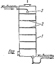 -колонна, 2-тарелки, 3-распределитель жидкости.