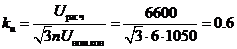 напряжению; Uрасч=6600 В - расчётное напряжение
