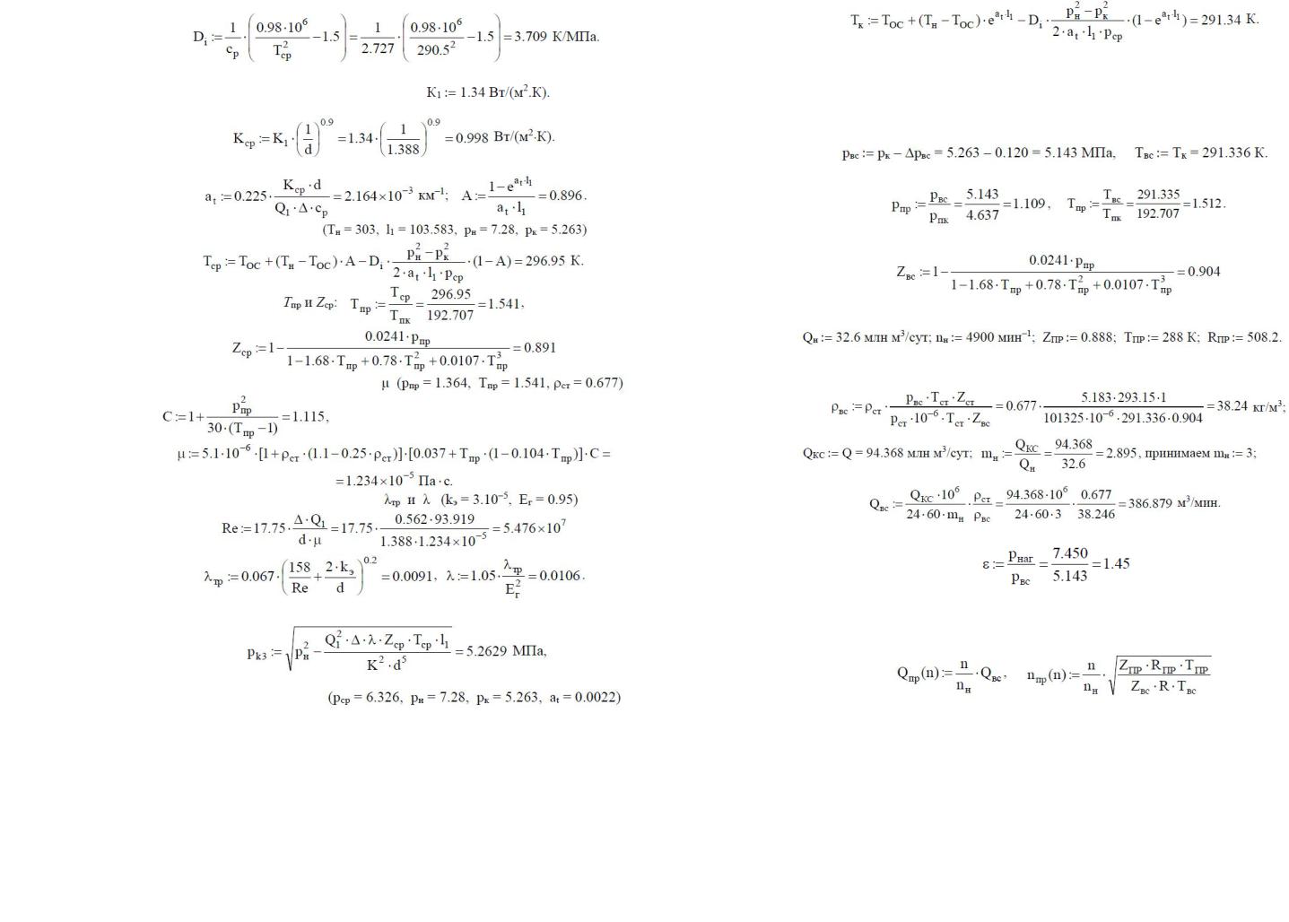 что весьма близко рк2 = 5.2630 МПа, поэтому среднее давление не уточняем. Конечная температура газа