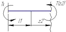 Кручение. Два скручивающих момента Т1 и Т2 вызывают кручение на участке AD. Построим эпюру крутящих моментов эТ(z) (рис. 2, в).