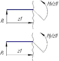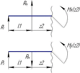 моментов (рис. 2, г, д) строится от сил P2, R2, RBy, RBx, R1 и P1 и изгибающего