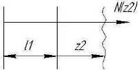 Растяжение (сжатие). Вал нагружен двумя сосредоточенными продольными силами: N1 и реакцией RCz = N1 в опоре С. Строим эпюру нормальных сил ЭN (рис.2, е).