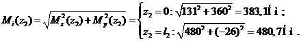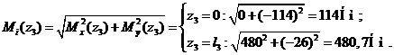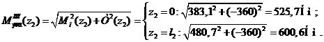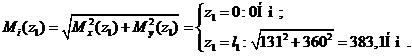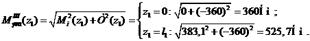 поперечное сечение, определим в сечениях величину суммарного изгибающего