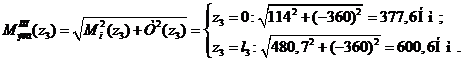 величины эквивалентных моментов по третьей теории прочности