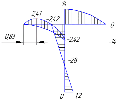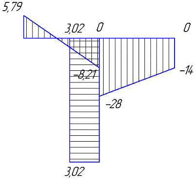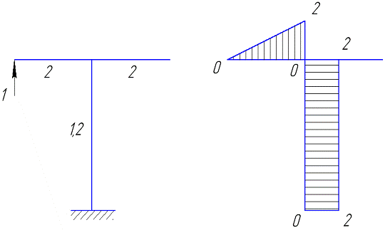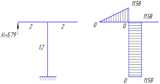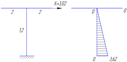 Знак «» означает, что сила Х1 направлена в противоположную сторону. Построим эпюры с полученными значениями Х1 и Х2: