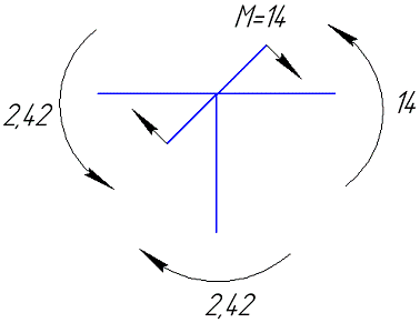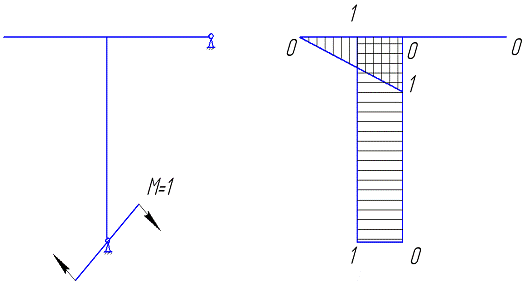 Известно, то угол поворота сечения С равен нулю. Используем это условие для проверки правильности найденных значений. Для этого возьмем основную систему, отличную от начальной, которая была использована в решении. В точку С приложим единичный момент.