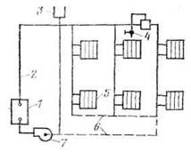 Рисунок 4 - Схема водяного отопления: 1 - котел; 2 -