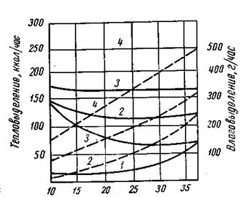 Рисунок 9 - График тепловлаговыделения человеком: 1-