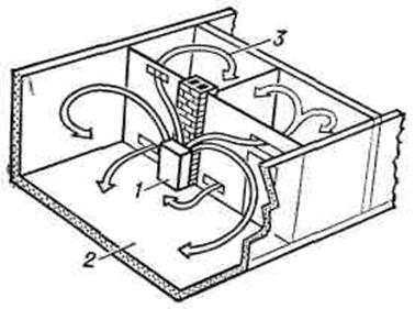 помещение; 3 - потоки теплоносителя