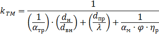 Коэффициент теплоотдачи трубного и межтрубного