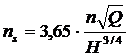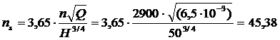 Вычисляем коэффициент быстроходности ns для первой точки значений H-Q, по формуле 4.
