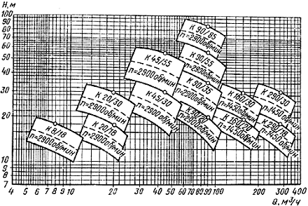 Q и напор Н, определяются по рисунку 2, согласно марке и мощности насоса.