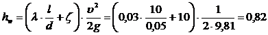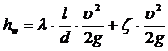 λ - коэффициент потерь напора по длине трубопровода, определяем по формуле 6;- диаметр всасывающего трубопровода, м;