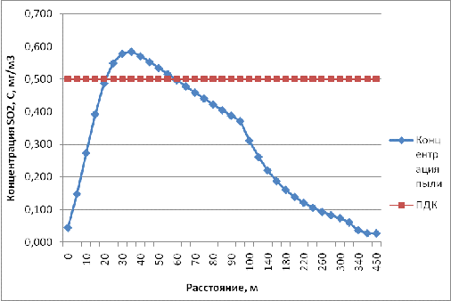 загрязняющих веществ от расстояния до источника выброса.