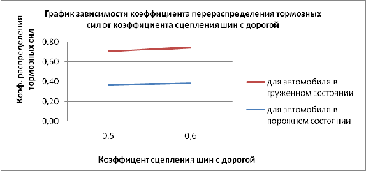 зависимости коэффициента перераспределения тормозных сил от коэффициента