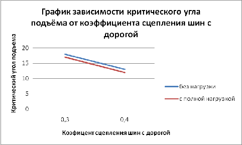 угла подъёма от коэффициента сцепления шин с дорогой