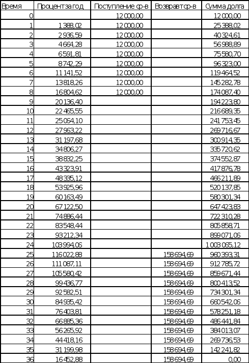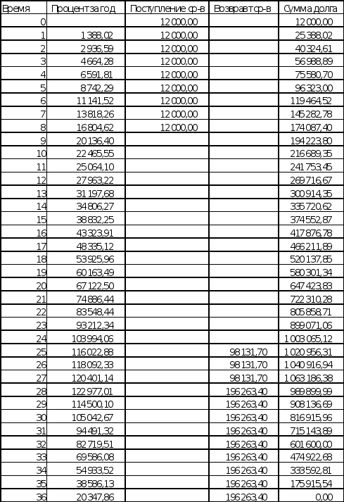 График поступления средств и возврата ссуды имеет вид