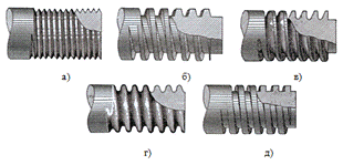 1.3 - Виды резьбы на стержне: а - треугольная, б, в - трапециевидная, г -