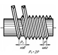 величине шага, где ход Рh одноходового винта равен шагу резьбы Р (рис. 1.5).