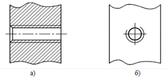 плоскость, перпендикулярную к оси стержня или отверстия, не изображают.