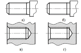 как показано на рисунке 1.18 а, в. Допускается изображать недорез резьбы, как