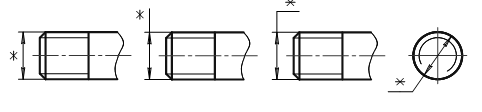 Рис. 1.31 - Нанесение обозначений конической и трубной цилиндрической резьбы: Знаком * отмечены места нанесения обозначения резьбы