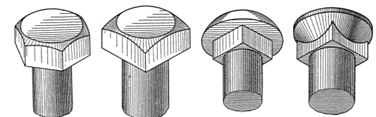 шестигранная; б - квадратная; в - сферическая с квадратным подголовком; г -