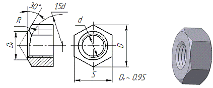 Рис. 2.9 - Изображение гайки на чертеже