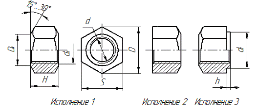 Рис. 2.10 - Гайка и виды её исполнений