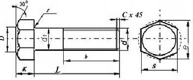 Высота фаски на стержне болта |