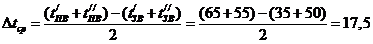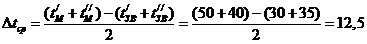 средняя разность температур масла и воды.
