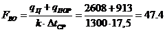 где = 1300 Вт/мІК - общий коэффициент теплопередачи пресной воды к