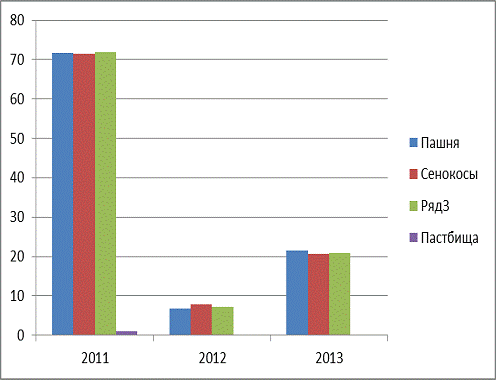 целесообразность перевода естественных кормовыхугодий в пашню, данные об урожайности и себестоимостипродукции необходимо брать не за один год, а в среднем за3-5 лет.