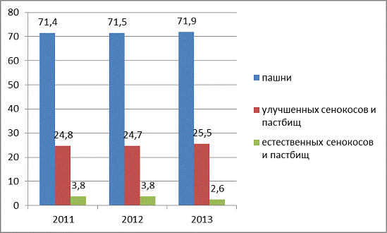 и дают лучшую отдачупахотные земли, затем улучшенные сенокосы и пастбища,
