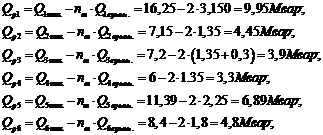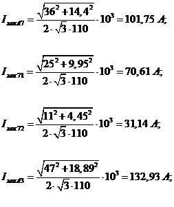 на остальных подстанциях определяются аналогично.